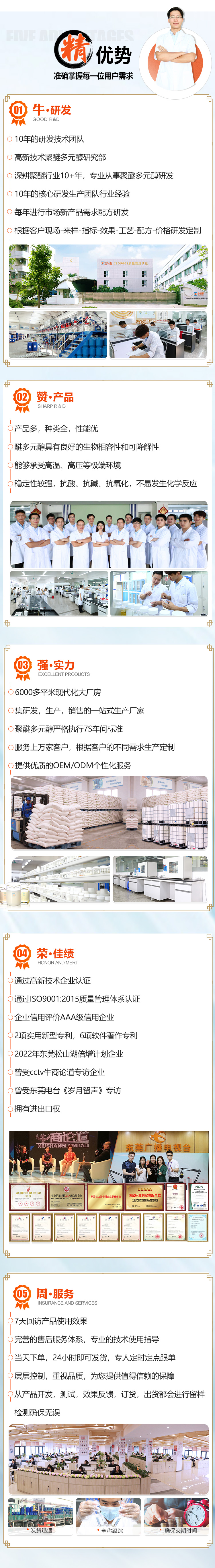 公司總部位于東莞松山湖高新技術企業(yè)開發(fā)區(qū),曾受央視CCTV牛商論道專訪及東莞電臺《歲月留聲》欄目專訪。連續(xù)榮獲了國家級高新技術企業(yè)認證,既是松山湖倍增企業(yè),也是松山湖上市后備企業(yè),連續(xù)通過IS09001:2015標準質量管理體系認證,榮獲國家AAA級重合同守信用企業(yè)、中國中小企業(yè)誠信示范單位、東莞十大成長性企業(yè)、光大WE谷優(yōu)秀企業(yè)等榮譽,希望通過強大自身來推動中國助劑行業(yè)的發(fā)展。